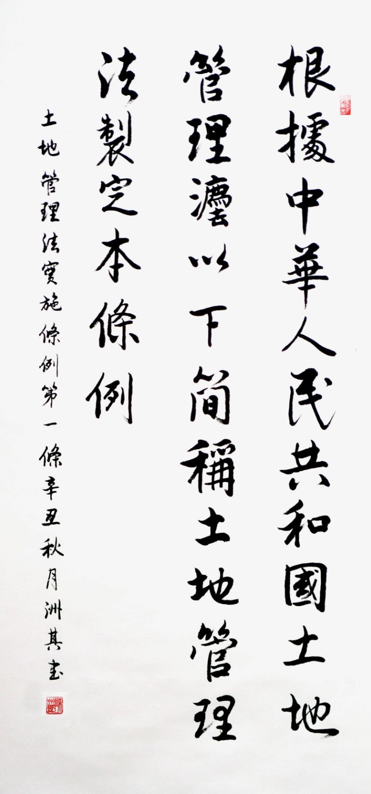 繼1600余位書法家參與書寫《中華人民共和國民法典》全部1260條法條之后,法治日報社聯(lián)合自然資源部法規(guī)司、自然資源部書畫研究會和北京昌平書法家協(xié)會,將筆端對準(zhǔn)土地管理“一法一條例”,即《中華人民共和國土地管理法》和《中華人民共和國土地管理法實施條例》。