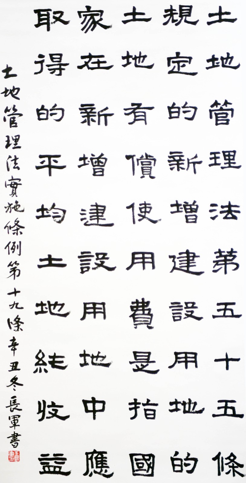 繼1600余位書(shū)法家參與書(shū)寫(xiě)《中華人民共和國(guó)民法典》全部1260條法條之后,法治日?qǐng)?bào)社聯(lián)合自然資源部法規(guī)司、自然資源部書(shū)畫(huà)研究會(huì)和北京昌平書(shū)法家協(xié)會(huì),將筆端對(duì)準(zhǔn)土地管理“一法一條例”,即《中華人民共和國(guó)土地管理法》和《中華人民共和國(guó)土地管理法實(shí)施條例》。