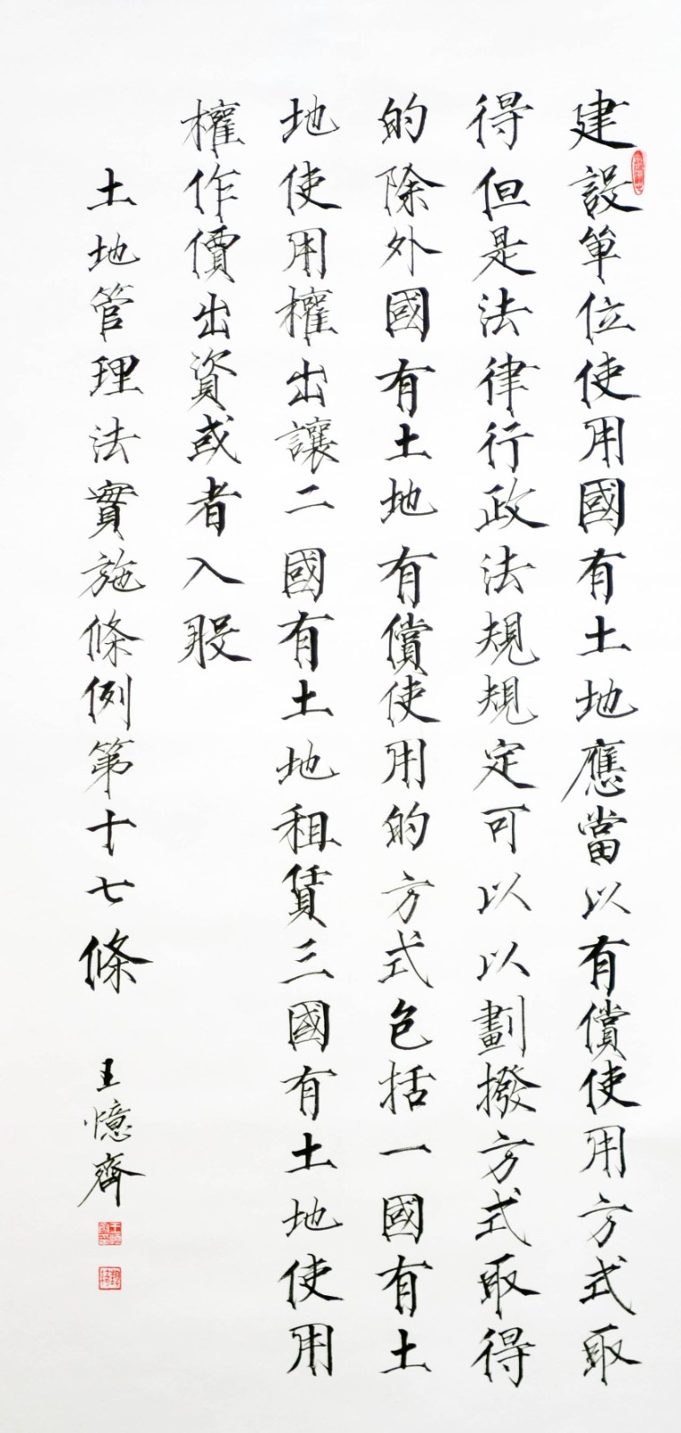 繼1600余位書法家參與書寫《中華人民共和國民法典》全部1260條法條之后,法治日報社聯(lián)合自然資源部法規(guī)司、自然資源部書畫研究會和北京昌平書法家協(xié)會,將筆端對準(zhǔn)土地管理“一法一條例”,即《中華人民共和國土地管理法》和《中華人民共和國土地管理法實(shí)施條例》。