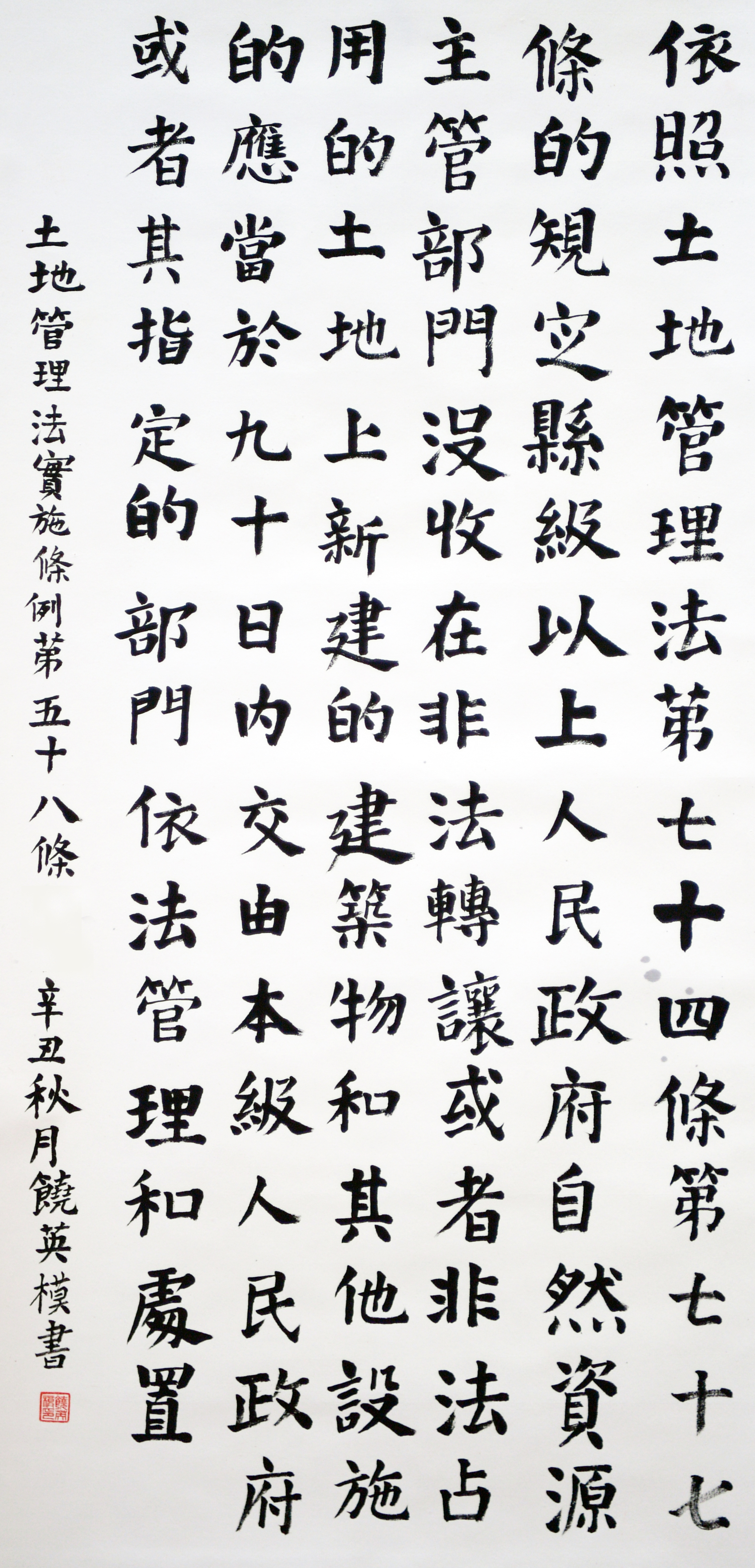 繼1600余位書法家參與書寫《中華人民共和國民法典》全部1260條法條之后,法治日報社聯(lián)合自然資源部法規(guī)司、自然資源部書畫研究會和北京昌平書法家協(xié)會,將筆端對準(zhǔn)土地管理“一法一條例”,即《中華人民共和國土地管理法》和《中華人民共和國土地管理法實施條例》。