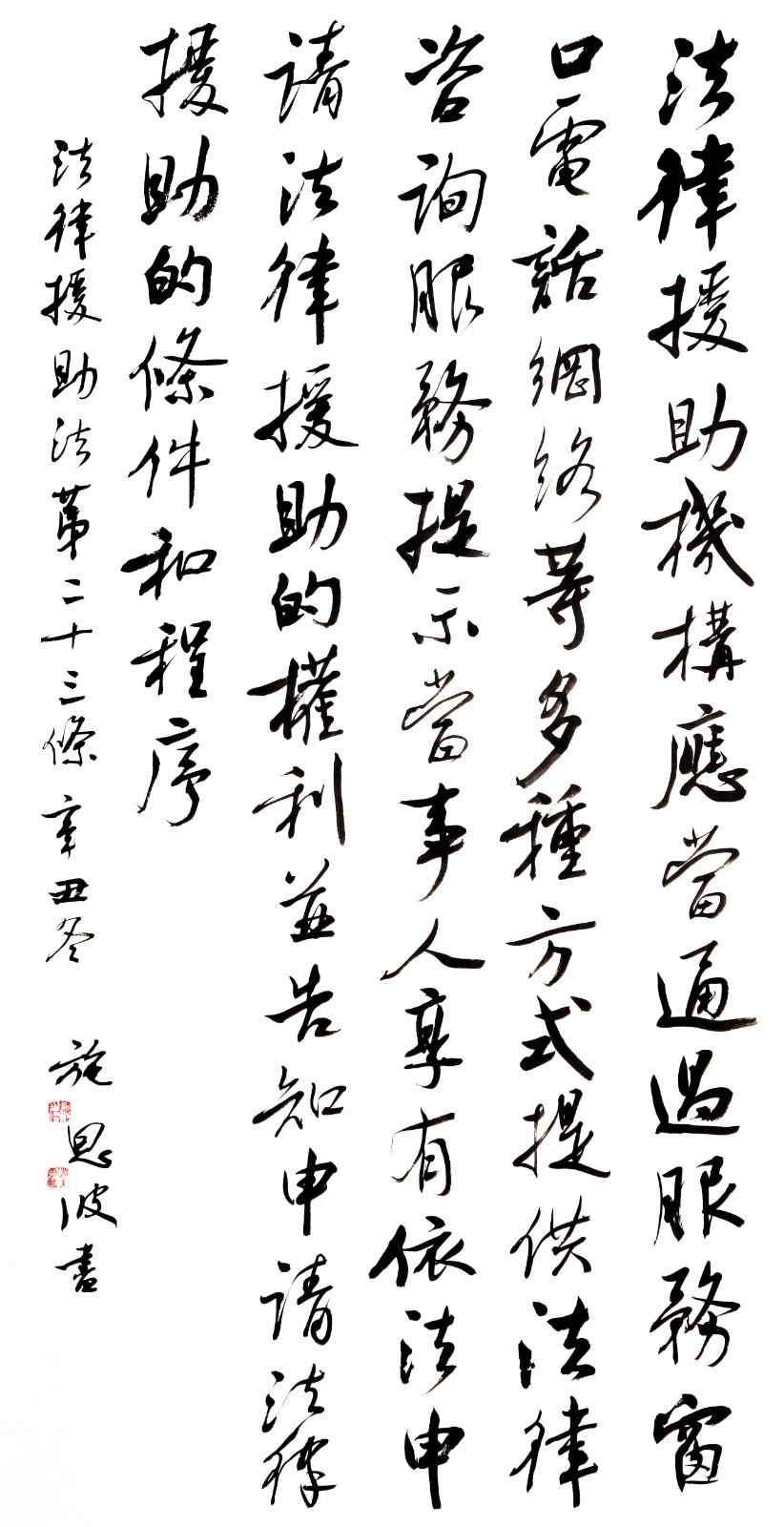 “書(shū)·法”活動(dòng)旨在為創(chuàng)新法治宣傳教育,多開(kāi)一點(diǎn)腦洞、多花一點(diǎn)心思、多出一點(diǎn)力量、多做一點(diǎn)貢獻(xiàn),引領(lǐng)和推動(dòng)更多的人拿起筆來(lái)學(xué)法、寫(xiě)法,在不斷“書(shū)·法”過(guò)程中,提升自身的法治素養(yǎng),在全社會(huì)弘揚(yáng)法治精神。