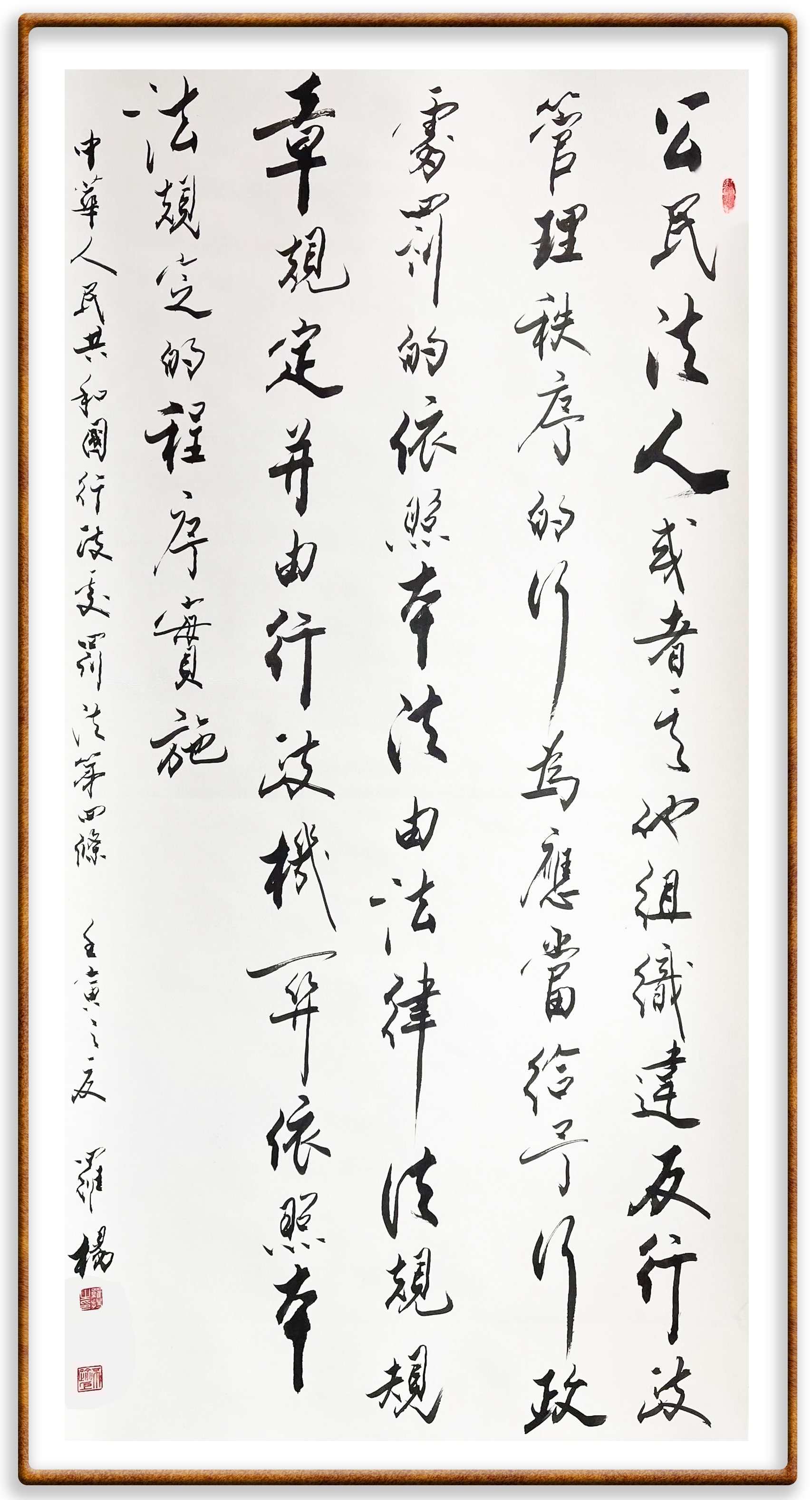 繼《中華人民共和國民法典》《中華人民共和國土地管理法》《中華人民共和國土地管理法實(shí)施條例》《中華人民共和國法律援助法》之后,法治日報(bào)社聯(lián)合北京市司法局、北京書法家協(xié)會(huì),將筆端對準(zhǔn)《中華人民共和國憲法》和《中華人民共和國行政處罰法》。