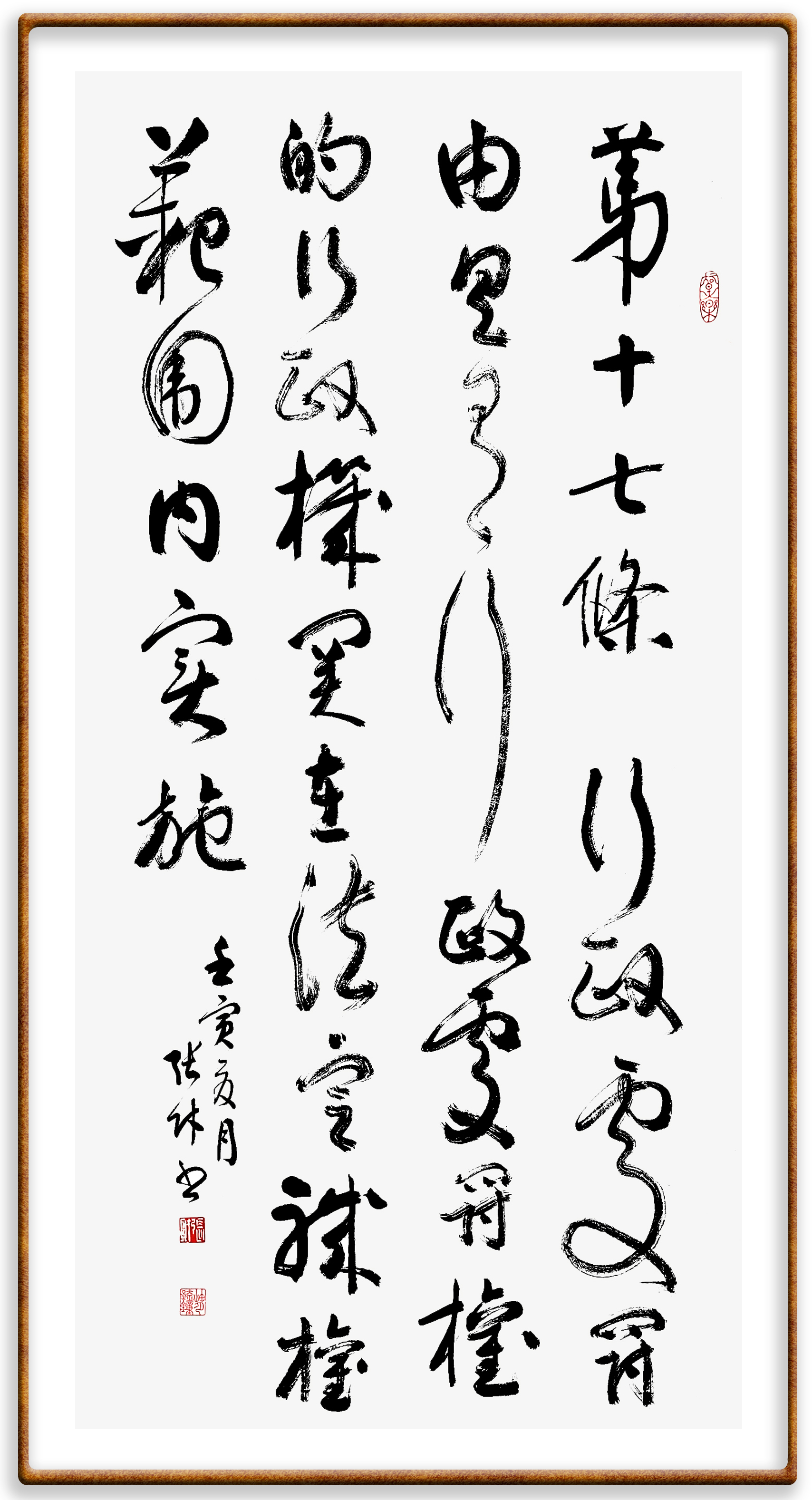 繼《中華人民共和國民法典》《中華人民共和國土地管理法》《中華人民共和國土地管理法實施條例》《中華人民共和國法律援助法》之后,法治日報社聯(lián)合北京市司法局、北京書法家協(xié)會,將筆端對準(zhǔn)《中華人民共和國憲法》和《中華人民共和國行政處罰法》。