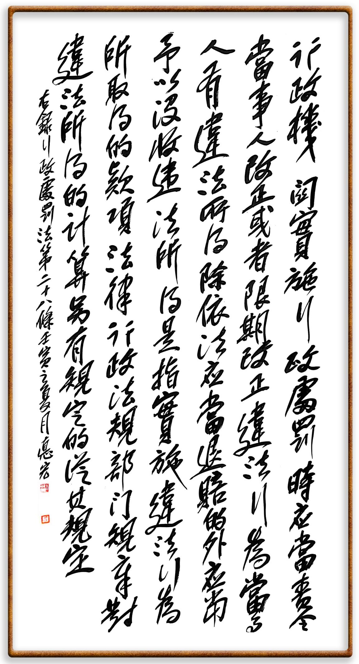 繼《中華人民共和國(guó)民法典》《中華人民共和國(guó)土地管理法》《中華人民共和國(guó)土地管理法實(shí)施條例》《中華人民共和國(guó)法律援助法》之后,法治日?qǐng)?bào)社聯(lián)合北京市司法局、北京書(shū)法家協(xié)會(huì),將筆端對(duì)準(zhǔn)《中華人民共和國(guó)憲法》和《中華人民共和國(guó)行政處罰法》。