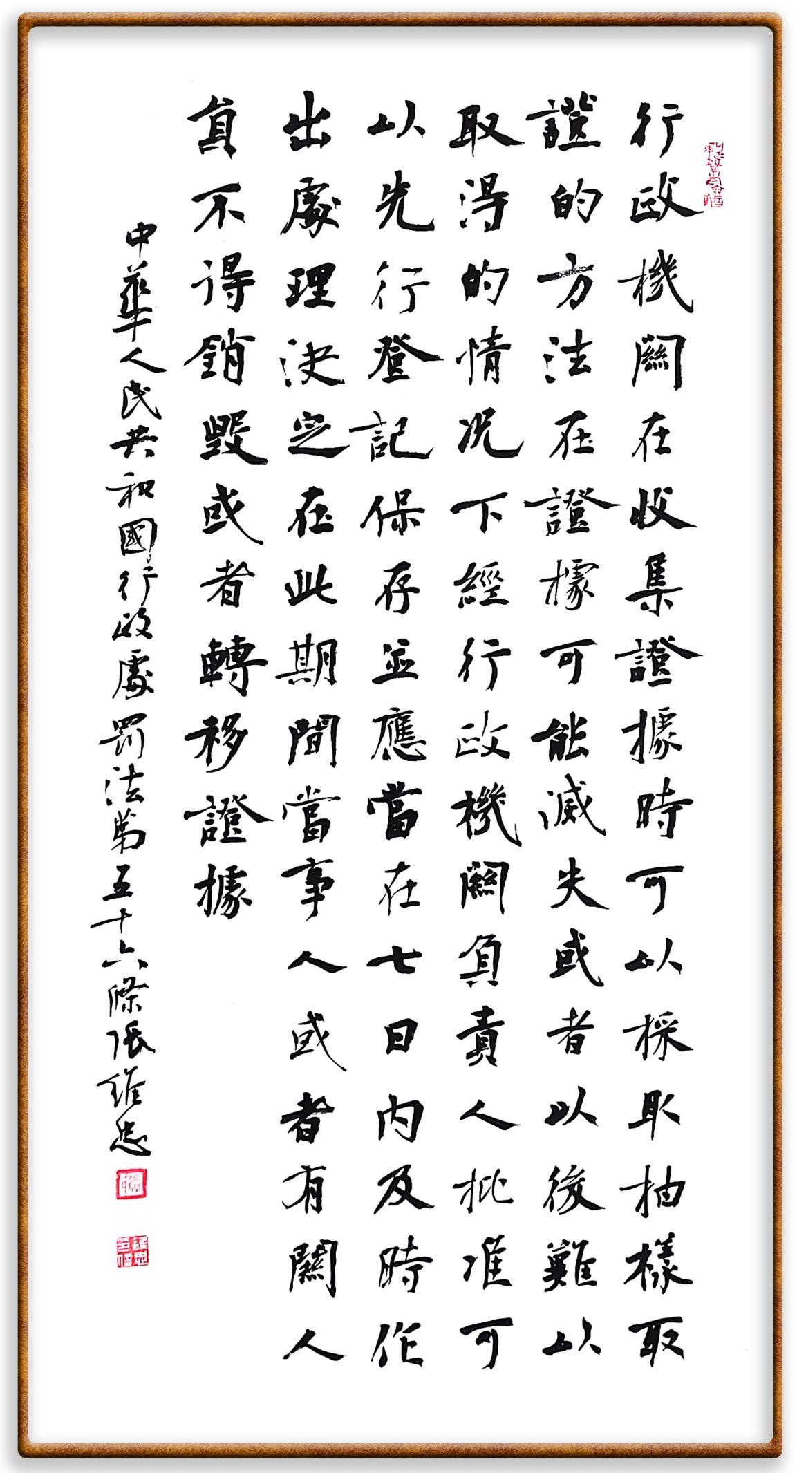 繼《中華人民共和國民法典》《中華人民共和國土地管理法》《中華人民共和國土地管理法實(shí)施條例》《中華人民共和國法律援助法》之后,法治日?qǐng)?bào)社聯(lián)合北京市司法局、北京書法家協(xié)會(huì),將筆端對(duì)準(zhǔn)《中華人民共和國憲法》和《中華人民共和國行政處罰法》。