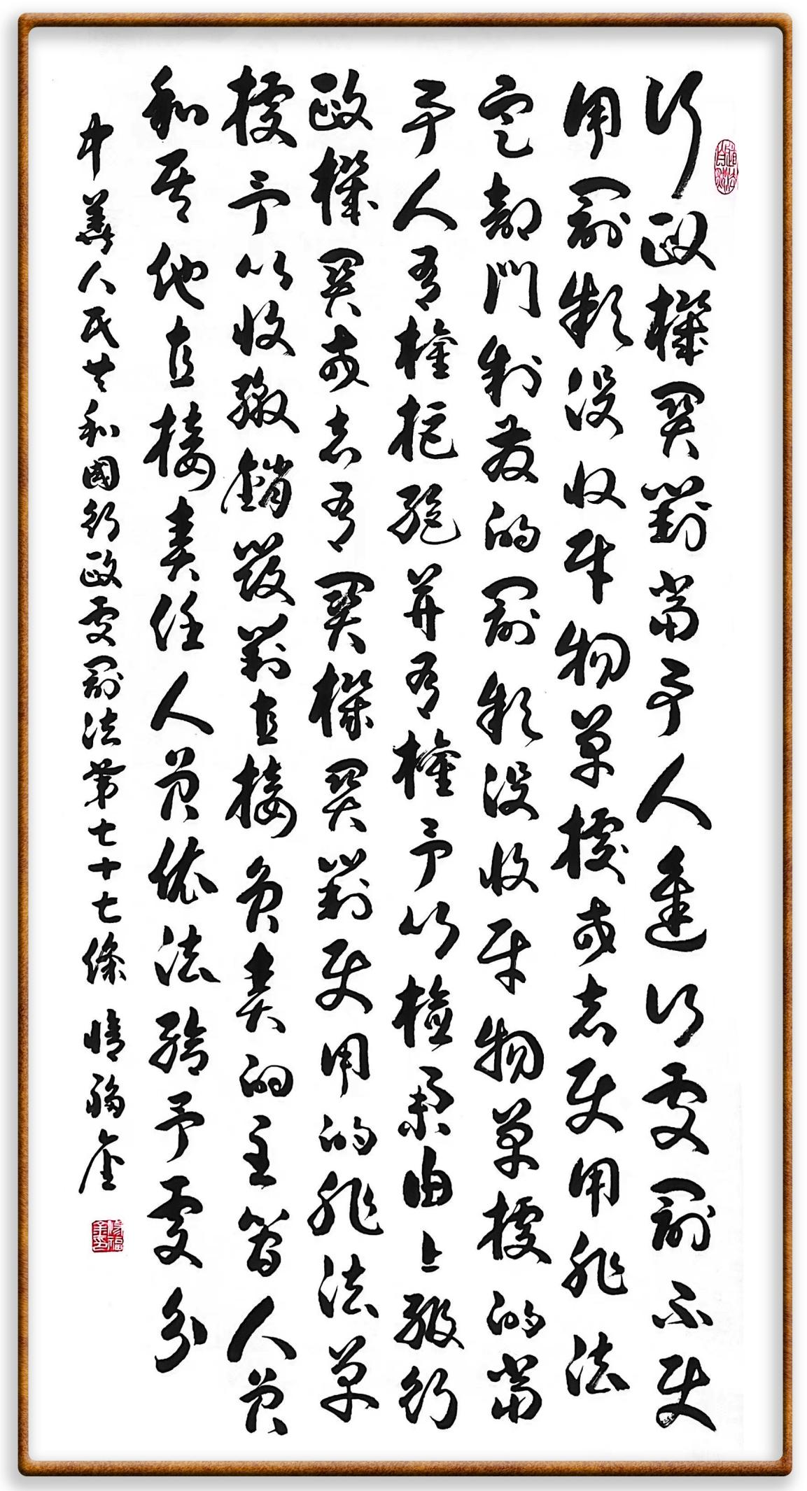 繼《中華人民共和國民法典》《中華人民共和國土地管理法》《中華人民共和國土地管理法實施條例》《中華人民共和國法律援助法》之后,法治日報社聯(lián)合北京市司法局、北京書法家協(xié)會,將筆端對準《中華人民共和國憲法》和《中華人民共和國行政處罰法》。