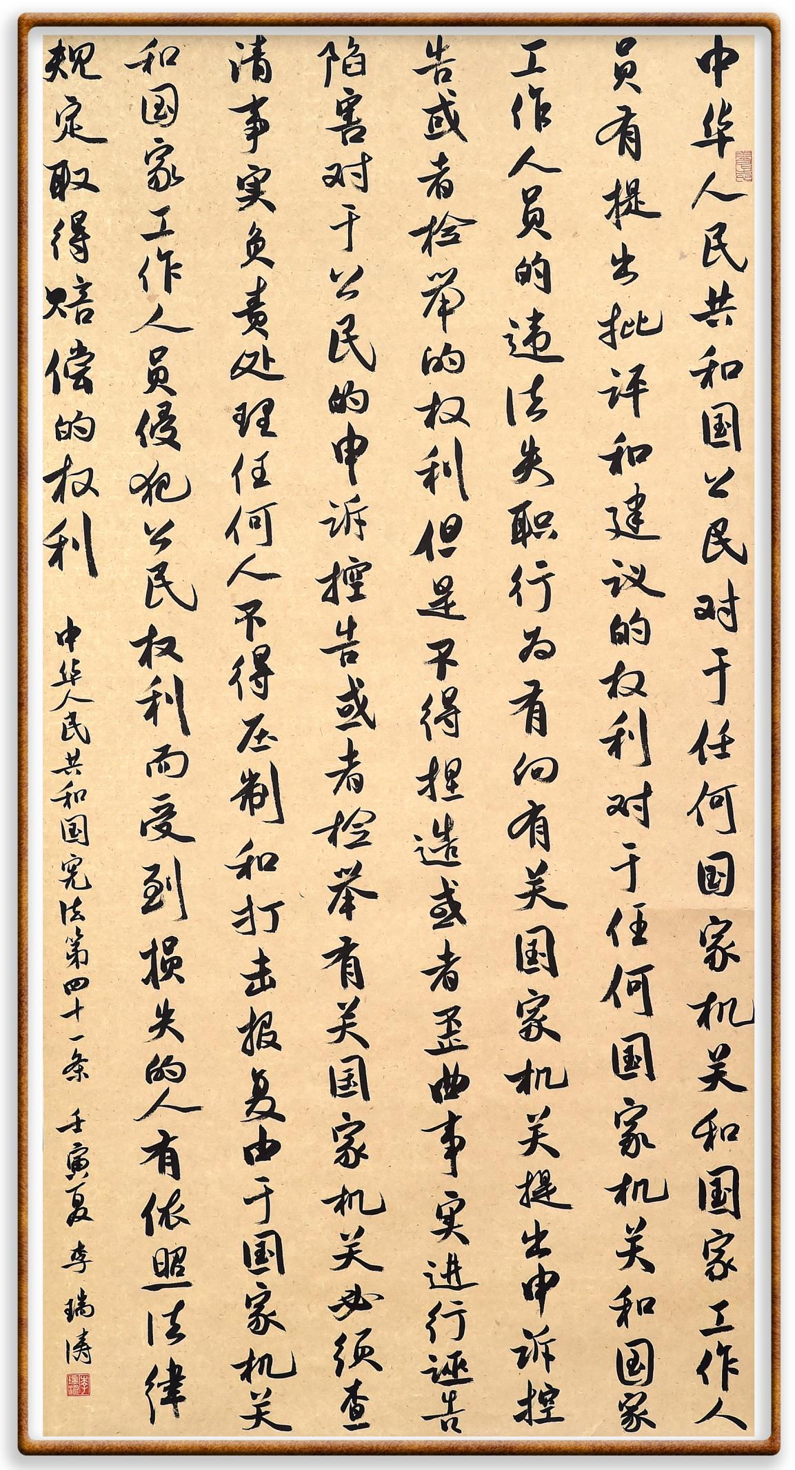 繼《中華人民共和國民法典》《中華人民共和國土地管理法》《中華人民共和國土地管理法實施條例》《中華人民共和國法律援助法》之后,法治日報社聯合北京市司法局、北京市書法家協(xié)會,將筆端對準《中華人民共和國憲法》和《中華人民共和國行政處罰法》。