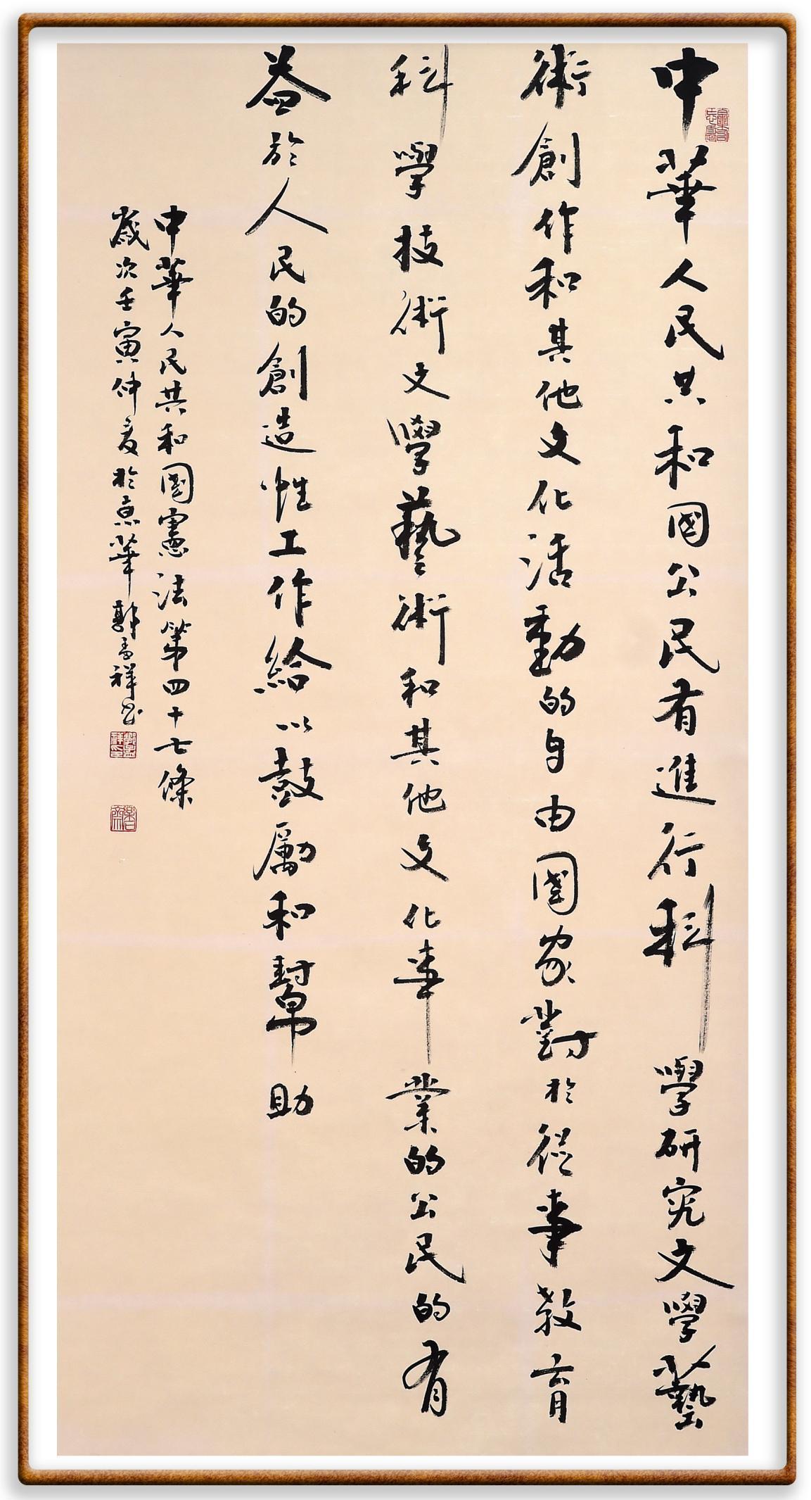繼《中華人民共和國民法典》《中華人民共和國土地管理法》《中華人民共和國土地管理法實施條例》《中華人民共和國法律援助法》之后,法治日報社聯(lián)合北京市司法局、北京書法家協(xié)會,將筆端對準(zhǔn)《中華人民共和國憲法》和《中華人民共和國行政處罰法》。