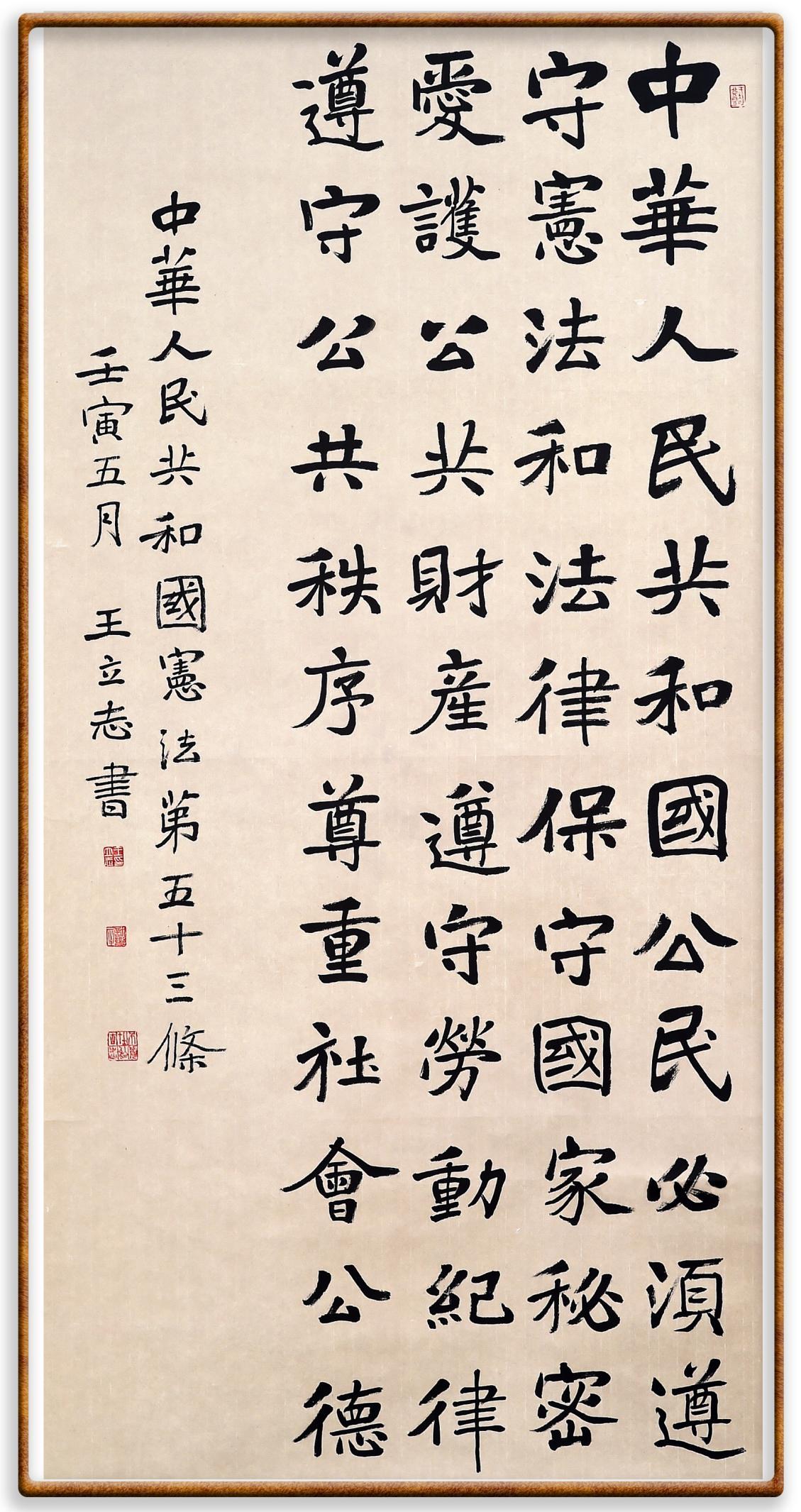 繼《中華人民共和國民法典》《中華人民共和國土地管理法》《中華人民共和國土地管理法實(shí)施條例》《中華人民共和國法律援助法》之后,法治日報(bào)社聯(lián)合北京市司法局、北京書法家協(xié)會(huì),將筆端對準(zhǔn)《中華人民共和國憲法》和《中華人民共和國行政處罰法》。