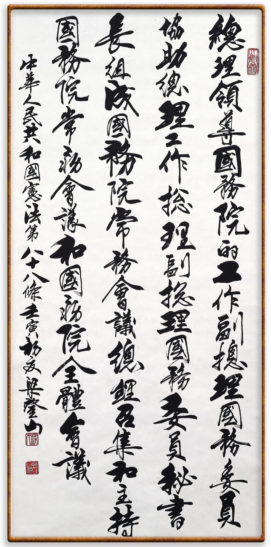 繼《中華人民共和國民法典》《中華人民共和國土地管理法》《中華人民共和國土地管理法實(shí)施條例》《中華人民共和國法律援助法》之后,法治日報(bào)社聯(lián)合北京市司法局、北京書法家協(xié)會(huì),將筆端對準(zhǔn)《中華人民共和國憲法》和《中華人民共和國行政處罰法》。