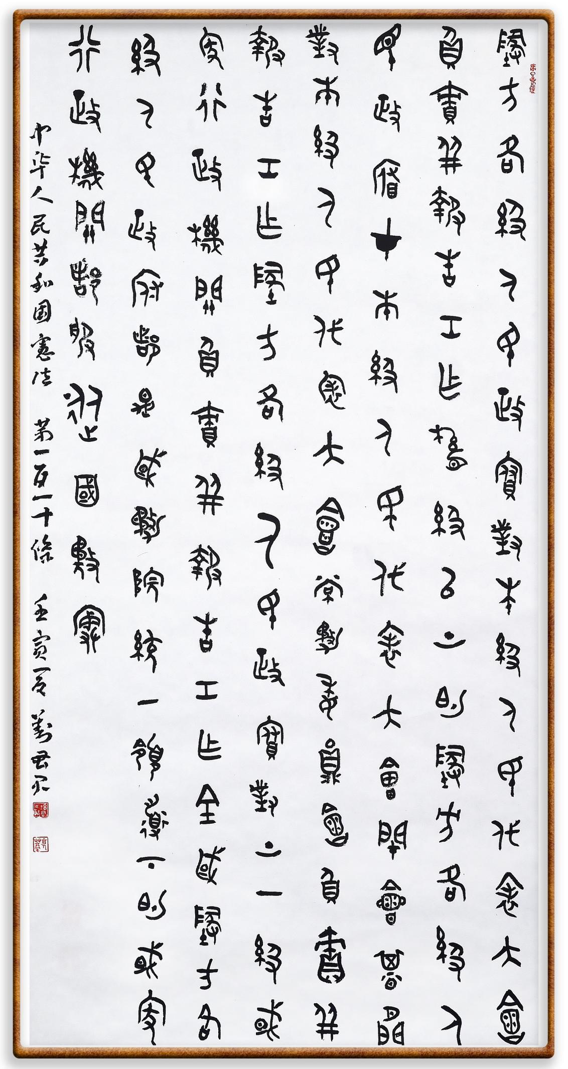 繼《中華人民共和國民法典》《中華人民共和國土地管理法》《中華人民共和國土地管理法實施條例》《中華人民共和國法律援助法》之后,法治日報社聯(lián)合北京市司法局、北京書法家協(xié)會,將筆端對準(zhǔn)《中華人民共和國憲法》和《中華人民共和國行政處罰法》。