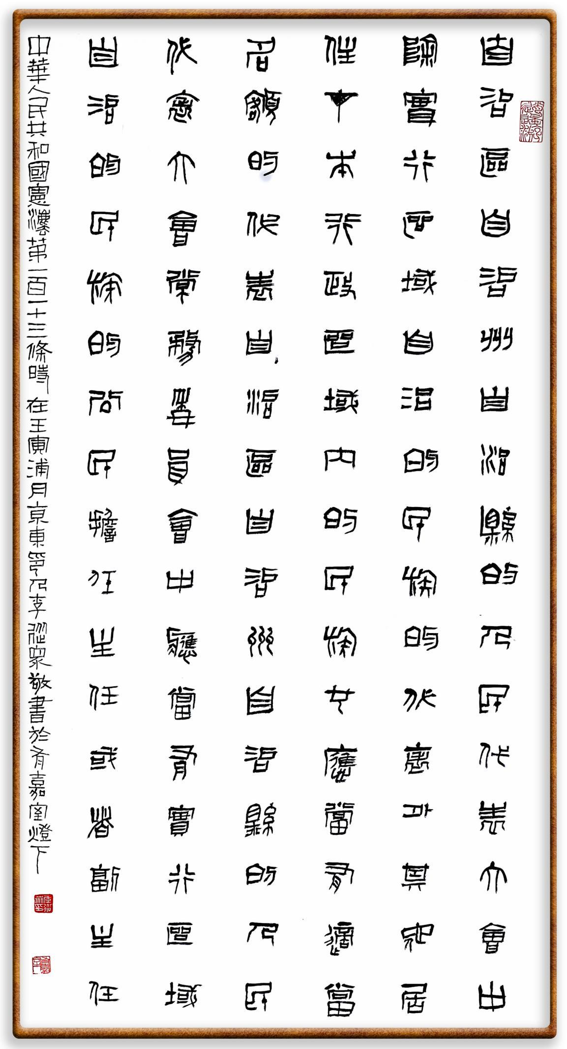 繼《中華人民共和國(guó)民法典》《中華人民共和國(guó)土地管理法》《中華人民共和國(guó)土地管理法實(shí)施條例》《中華人民共和國(guó)法律援助法》之后,法治日?qǐng)?bào)社聯(lián)合北京市司法局、北京書法家協(xié)會(huì),將筆端對(duì)準(zhǔn)《中華人民共和國(guó)憲法》和《中華人民共和國(guó)行政處罰法》。