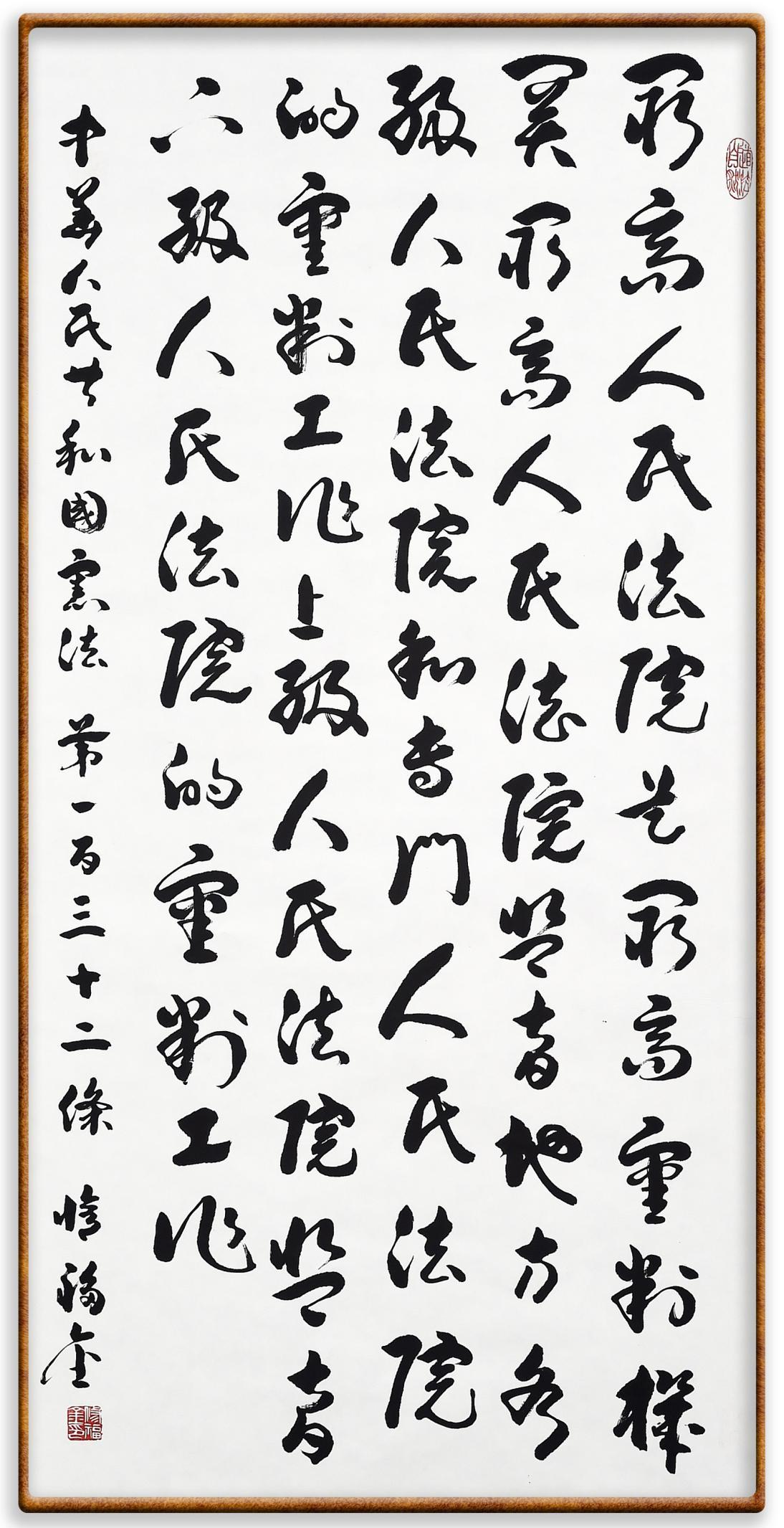 繼《中華人民共和國民法典》《中華人民共和國土地管理法》《中華人民共和國土地管理法實(shí)施條例》《中華人民共和國法律援助法》之后,法治日?qǐng)?bào)社聯(lián)合北京市司法局、北京書法家協(xié)會(huì),將筆端對(duì)準(zhǔn)《中華人民共和國憲法》和《中華人民共和國行政處罰法》。