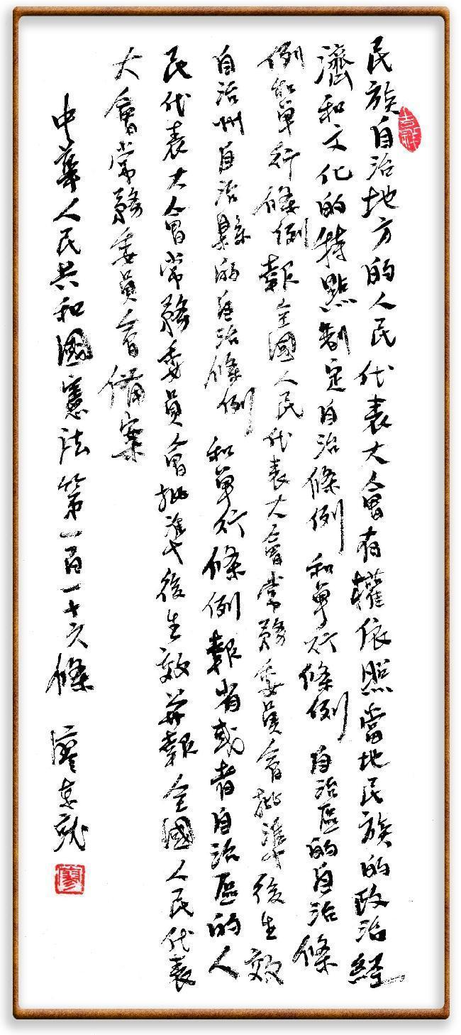 繼《中華人民共和國民法典》《中華人民共和國土地管理法》《中華人民共和國土地管理法實施條例》《中華人民共和國法律援助法》之后,法治日報社聯(lián)合北京市司法局、北京書法家協(xié)會,將筆端對準(zhǔn)《中華人民共和國憲法》和《中華人民共和國行政處罰法》。