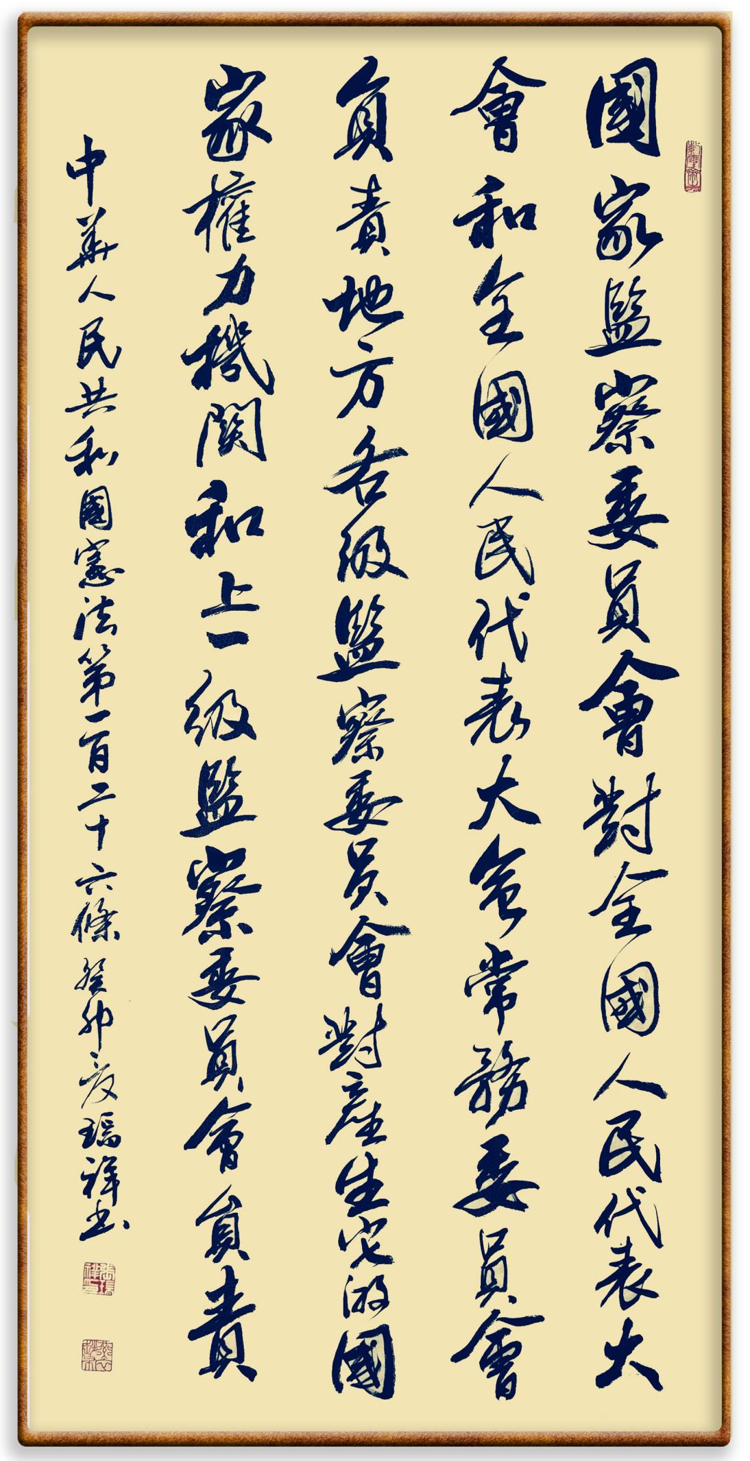 繼《中華人民共和國(guó)民法典》《中華人民共和國(guó)土地管理法》《中華人民共和國(guó)土地管理法實(shí)施條例》《中華人民共和國(guó)法律援助法》之后,法治日?qǐng)?bào)社聯(lián)合北京市司法局、北京書(shū)法家協(xié)會(huì),將筆端對(duì)準(zhǔn)《中華人民共和國(guó)憲法》和《中華人民共和國(guó)行政處罰法》。
