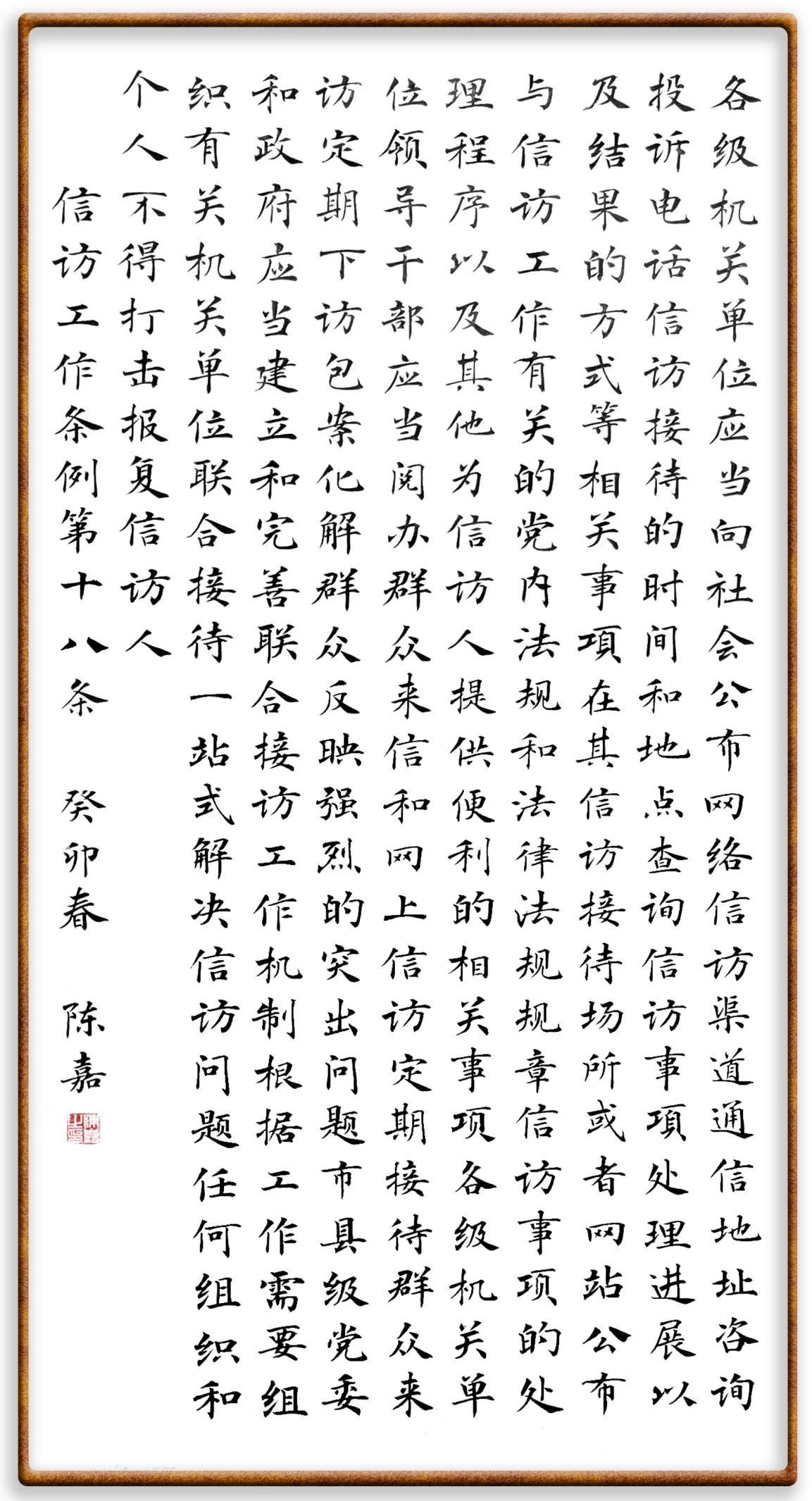 2022年5月1日,《信訪工作條例》正式施行。今年5月是《條例》施行一周年,為進(jìn)一步學(xué)習(xí)好、宣傳好、貫徹好這部條例,在全社會(huì)營造辦事依法、遇事找法、解決問題用法、化解矛盾靠法的良好法治環(huán)境,繼《中華人民共和國民法典》《中華人民共和國憲法》等法律法規(guī)之后,法制日?qǐng)?bào)社聯(lián)合國家信訪局,將筆端對(duì)準(zhǔn)《信訪工作條例》。