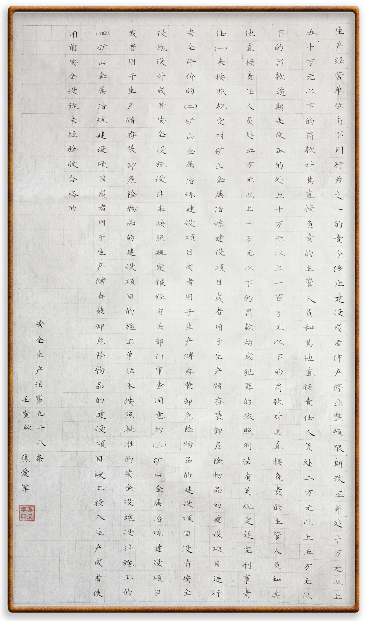 為推動安全生產(chǎn)法家喻戶曉、深入人心,在全社會營造良好的安全生產(chǎn)法治氛圍,繼《中華人民共和國民法典》《中華人民共和國土地管理法》《中華人民共和國土地管理法實施條例》《中華人民共和國法律援助法》《中華人民共和國憲法》《中華人民共和國行政處罰法》之后,法治日報社聯(lián)合應(yīng)急管理部政策法規(guī)司、中國應(yīng)急管理報社,將筆端對準《中華人民共和國安全生產(chǎn)法》。