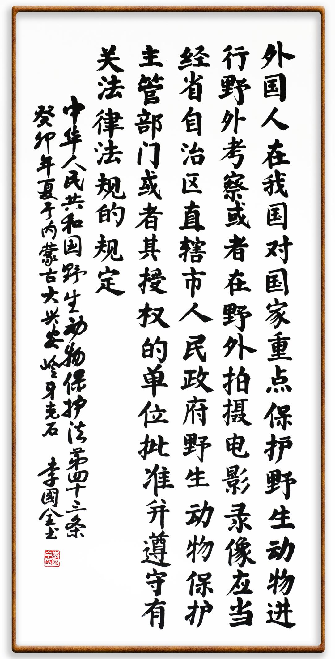 野生動(dòng)物保護(hù)法第四十三條 外國(guó)人在我國(guó)對(duì)國(guó)家重點(diǎn)保護(hù)野生動(dòng)物進(jìn)行野外考察或者在野外拍攝電影、錄像,應(yīng)當(dāng)經(jīng)省、自治區(qū)、直轄市人民政府野生動(dòng)物保護(hù)主管部門或者其授權(quán)的單位批準(zhǔn),并遵守有關(guān)法律法規(guī)的規(guī)定。