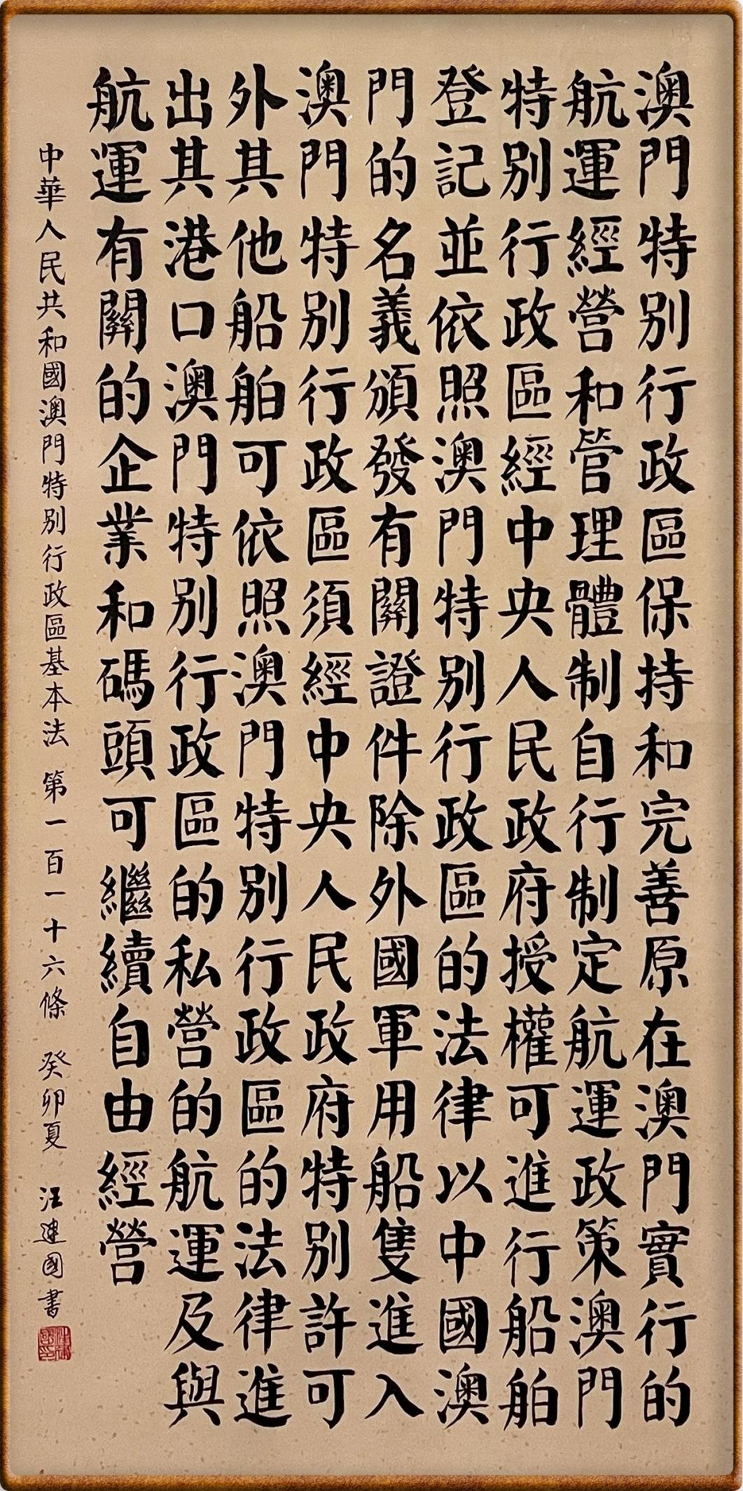 澳門基本法第一百一十六條 澳門特別行政區(qū)保持和完善原在澳門實行的航運經(jīng)營和管理體制,自行制定航運政策。