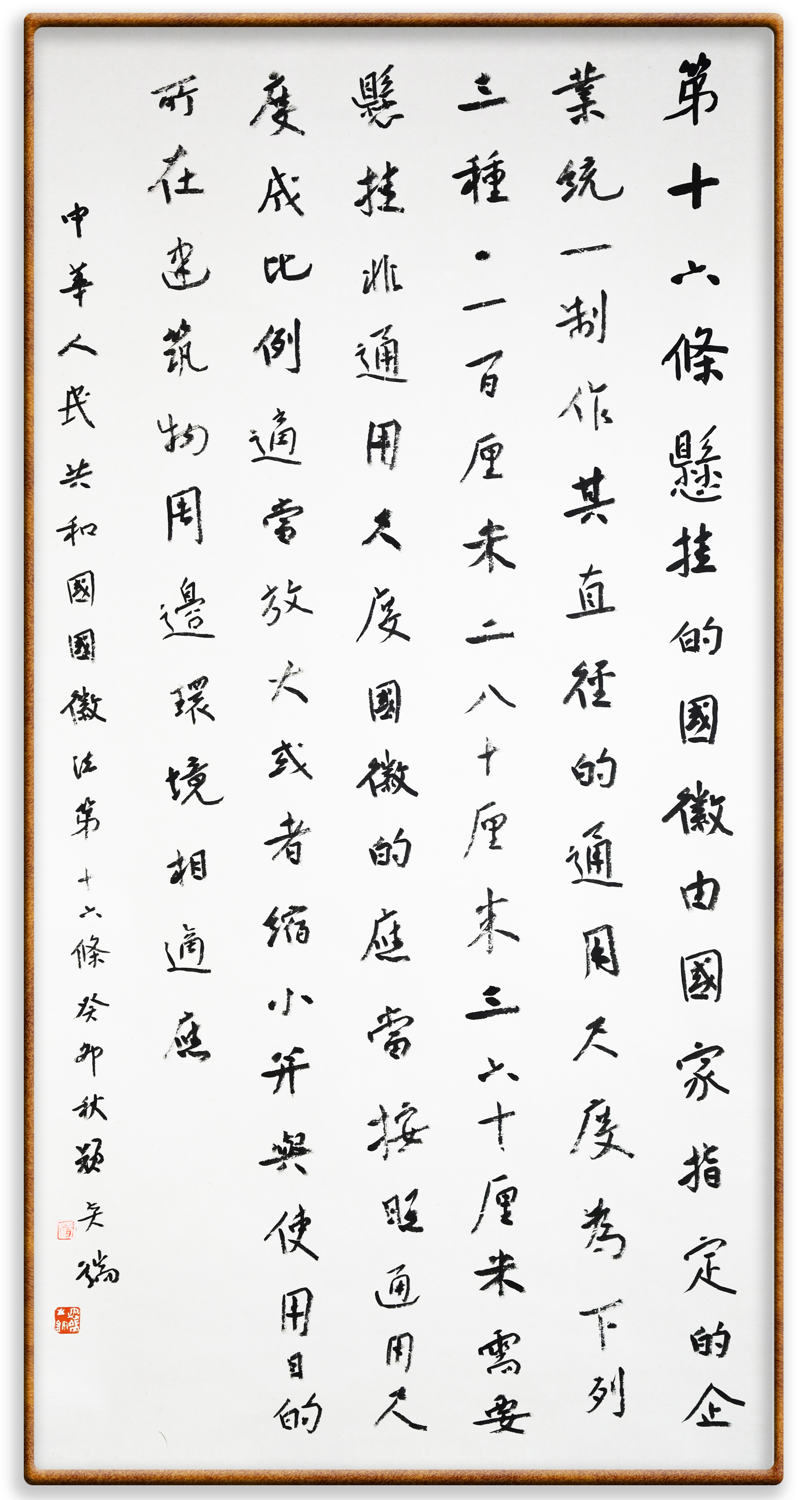 國(guó)徽法第十六條 懸掛的國(guó)徽由國(guó)家指定的企業(yè)統(tǒng)一制作,其直徑的通用尺度為下列三種: