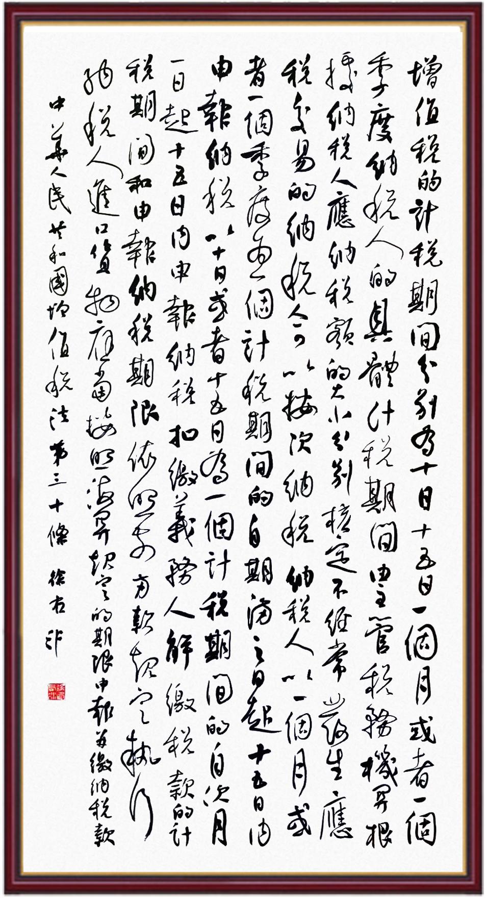 稅收一頭連著國計(jì),一頭連著民生。全面推進(jìn)依法治稅,是全面依法治國基本方略在稅收領(lǐng)域的集中體現(xiàn)。《中華人民共和國增值稅法》將于2026年1月1日起施行,對全面落實(shí)稅收法定原則、健全有利于高質(zhì)量發(fā)展的增值稅制度、規(guī)范增值稅的征收和繳納、保護(hù)納稅人合法權(quán)益具有重要意義。繼書寫《中華人民共和國民法典》《中華人民共和國憲法》《中華人民共和國國旗法》《中華人民共和國國徽法》《中華人民共和國國歌法》《中華人民共和國法官法》《中華人民共和國黃河保護(hù)法》等法律法規(guī)之后,法制日報(bào)社將筆端對準(zhǔn)《中華人民共和國增值稅法》。