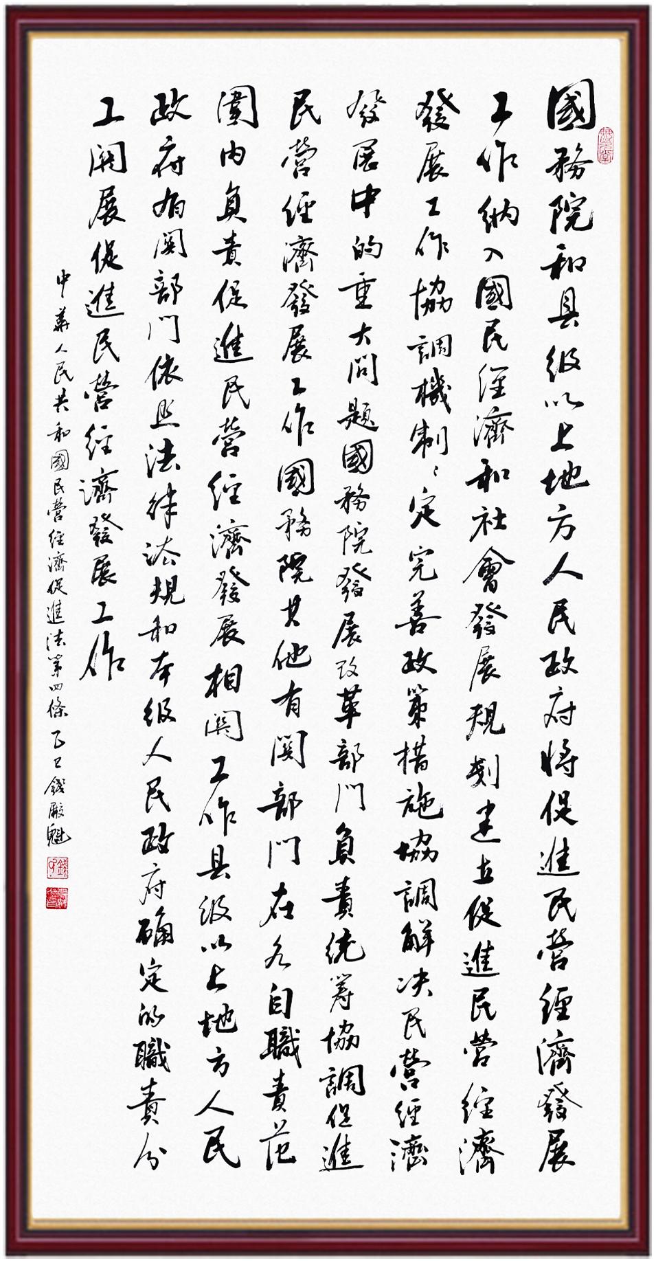 《中華人民共和國民營經濟促進法》自今年5月20日起施行。作為我國首部專門關于民營經濟發(fā)展的基礎性法律,民營經濟促進法將支持和保障民營經濟發(fā)展的法律制度融入中國特色社會主義法律體系,具有重大的法治意義,為促進民營經濟持續(xù)、健康、高質量發(fā)展提供了堅實的法治保障。為更好地學習、宣傳、貫徹這部法律,法治日報社聯(lián)合司法部普法與依法治理局,開展“‘書·法’系列活動之書寫《中華人民共和國民營經濟促進法》”活動。