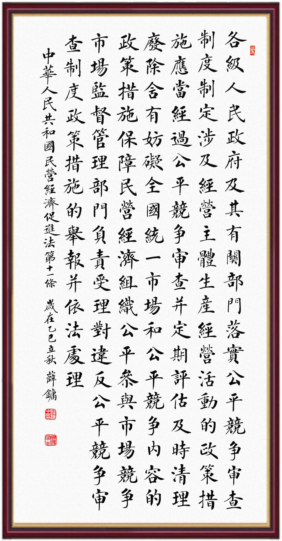 《中華人民共和國民營經(jīng)濟(jì)促進(jìn)法》自今年5月20日起施行。作為我國首部專門關(guān)于民營經(jīng)濟(jì)發(fā)展的基礎(chǔ)性法律,民營經(jīng)濟(jì)促進(jìn)法將支持和保障民營經(jīng)濟(jì)發(fā)展的法律制度融入中國特色社會主義法律體系,具有重大的法治意義,為促進(jìn)民營經(jīng)濟(jì)持續(xù)、健康、高質(zhì)量發(fā)展提供了堅(jiān)實(shí)的法治保障。為更好地學(xué)習(xí)、宣傳、貫徹這部法律,法治日報社聯(lián)合司法部普法與依法治理局,開展“‘書·法’系列活動之書寫《中華人民共和國民營經(jīng)濟(jì)促進(jìn)法》”活動。