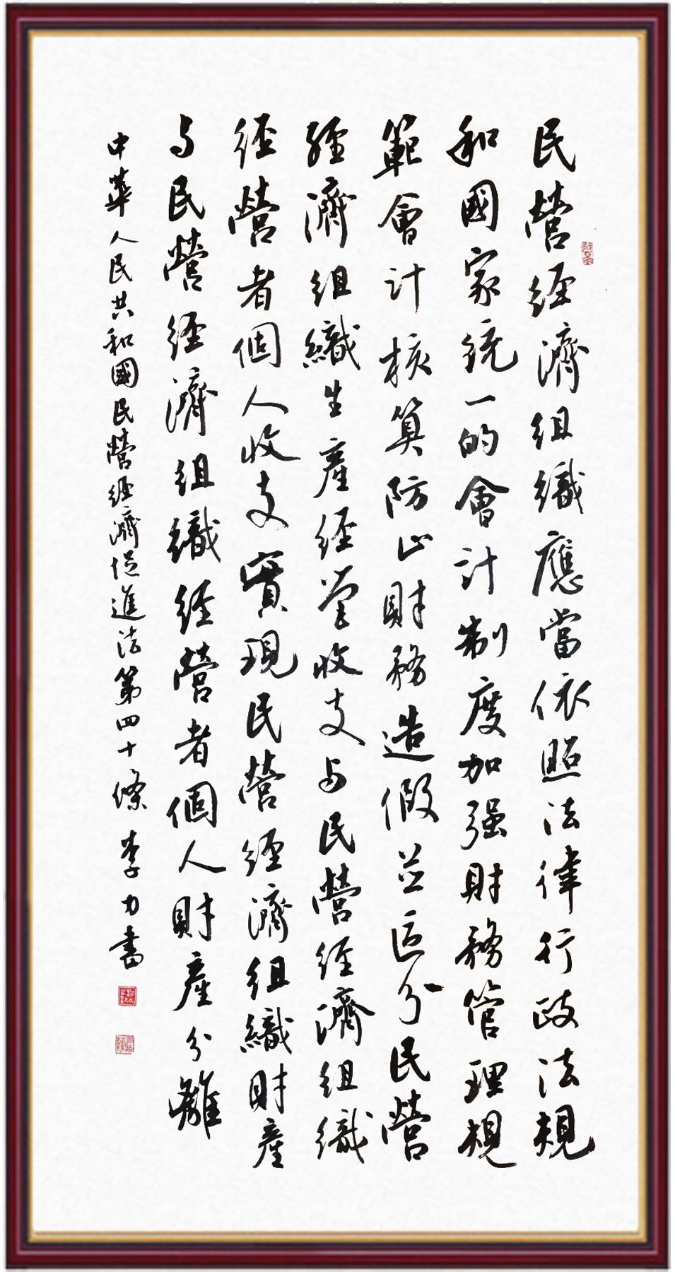 《中華人民共和國(guó)民營(yíng)經(jīng)濟(jì)促進(jìn)法》自今年5月20日起施行。作為我國(guó)首部專(zhuān)門(mén)關(guān)于民營(yíng)經(jīng)濟(jì)發(fā)展的基礎(chǔ)性法律,民營(yíng)經(jīng)濟(jì)促進(jìn)法將支持和保障民營(yíng)經(jīng)濟(jì)發(fā)展的法律制度融入中國(guó)特色社會(huì)主義法律體系,具有重大的法治意義,為促進(jìn)民營(yíng)經(jīng)濟(jì)持續(xù)、健康、高質(zhì)量發(fā)展提供了堅(jiān)實(shí)的法治保障。為更好地學(xué)習(xí)、宣傳、貫徹這部法律,法治日?qǐng)?bào)社聯(lián)合司法部普法與依法治理局,開(kāi)展“‘書(shū)·法’系列活動(dòng)之書(shū)寫(xiě)《中華人民共和國(guó)民營(yíng)經(jīng)濟(jì)促進(jìn)法》”活動(dòng)。