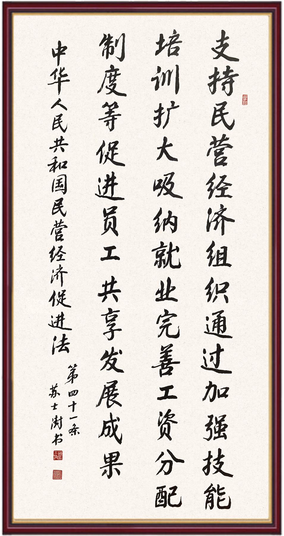 《中華人民共和國(guó)民營(yíng)經(jīng)濟(jì)促進(jìn)法》自今年5月20日起施行。作為我國(guó)首部專門(mén)關(guān)于民營(yíng)經(jīng)濟(jì)發(fā)展的基礎(chǔ)性法律,民營(yíng)經(jīng)濟(jì)促進(jìn)法將支持和保障民營(yíng)經(jīng)濟(jì)發(fā)展的法律制度融入中國(guó)特色社會(huì)主義法律體系,具有重大的法治意義,為促進(jìn)民營(yíng)經(jīng)濟(jì)持續(xù)、健康、高質(zhì)量發(fā)展提供了堅(jiān)實(shí)的法治保障。為更好地學(xué)習(xí)、宣傳、貫徹這部法律,法治日?qǐng)?bào)社聯(lián)合司法部普法與依法治理局,開(kāi)展“‘書(shū)·法’系列活動(dòng)之書(shū)寫(xiě)《中華人民共和國(guó)民營(yíng)經(jīng)濟(jì)促進(jìn)法》”活動(dòng)。