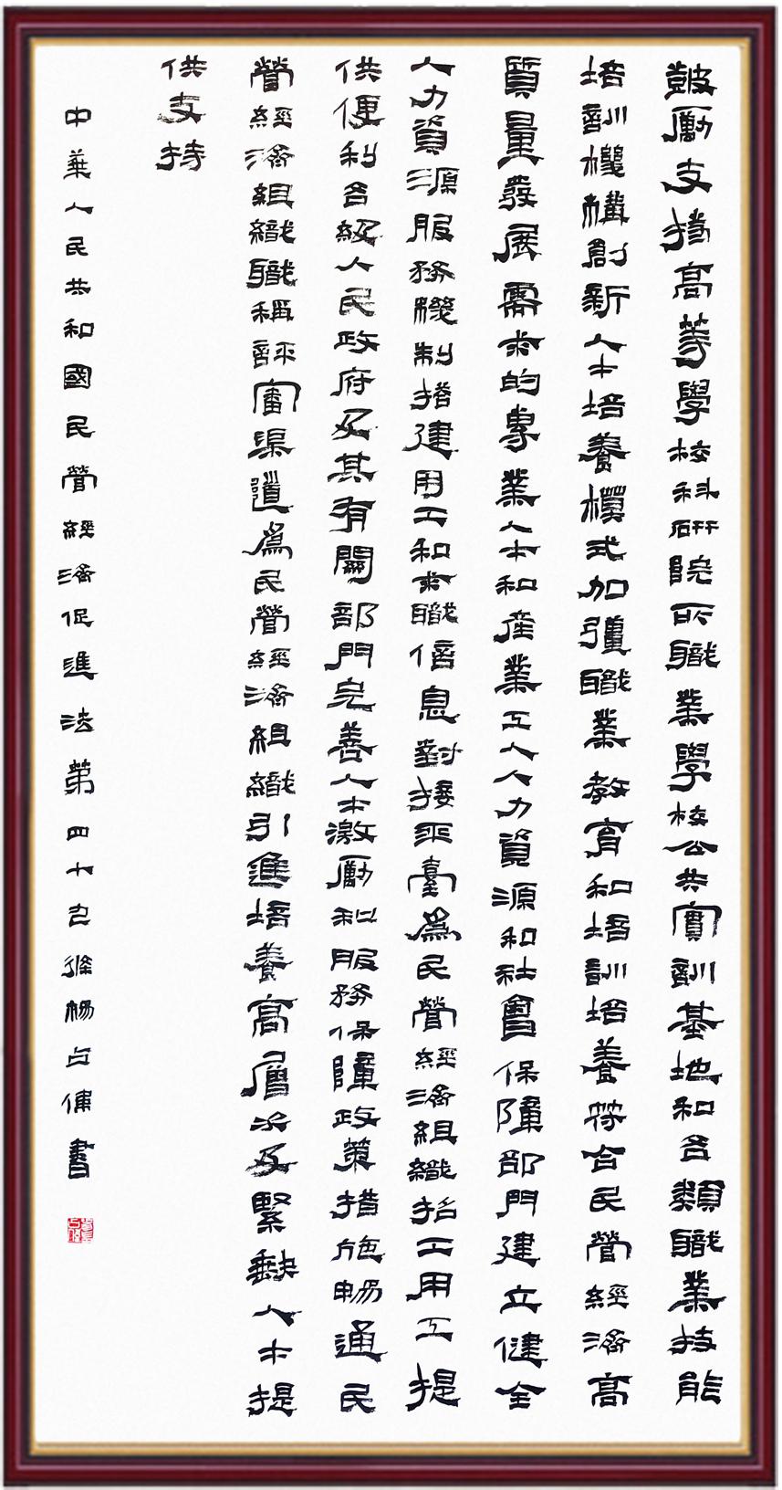《中華人民共和國民營經濟促進法》自今年5月20日起施行。作為我國首部專門關于民營經濟發(fā)展的基礎性法律,民營經濟促進法將支持和保障民營經濟發(fā)展的法律制度融入中國特色社會主義法律體系,具有重大的法治意義,為促進民營經濟持續(xù)、健康、高質量發(fā)展提供了堅實的法治保障。為更好地學習、宣傳、貫徹這部法律,法治日報社聯(lián)合司法部普法與依法治理局,開展“‘書·法’系列活動之書寫《中華人民共和國民營經濟促進法》”活動。