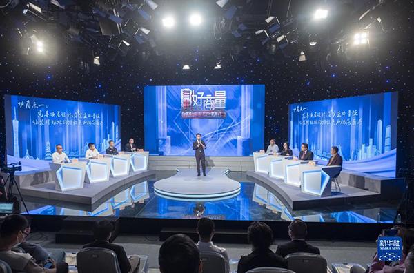 政協(xié)委員、政府部門(mén)代表、物業(yè)代表等在廣州市政協(xié)“有事好商量”民生實(shí)事協(xié)商平臺(tái),圍繞加強(qiáng)裝修垃圾管理議題展開(kāi)協(xié)商(2021年11月19日攝)。新華社發(fā)(莊小龍 攝)