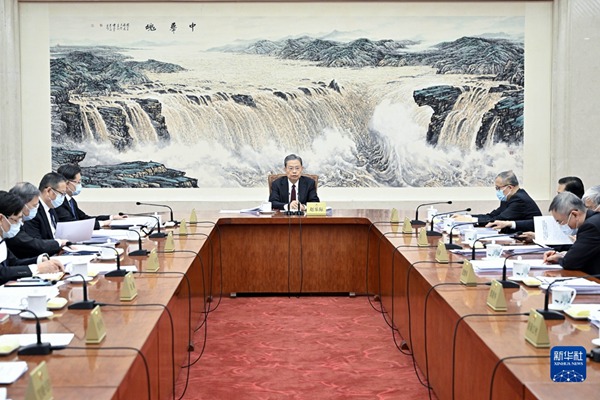 4月14日下午,十四屆全國(guó)人大常委會(huì)第二次委員長(zhǎng)會(huì)議在北京人民大會(huì)堂舉行。趙樂(lè)際委員長(zhǎng)主持會(huì)議。新華社記者 殷博古 攝