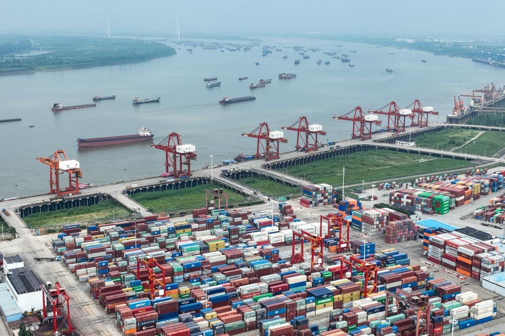 盛夏時(shí)節(jié),長(zhǎng)江中游的武漢陽邏港,船來船往,一片繁忙。