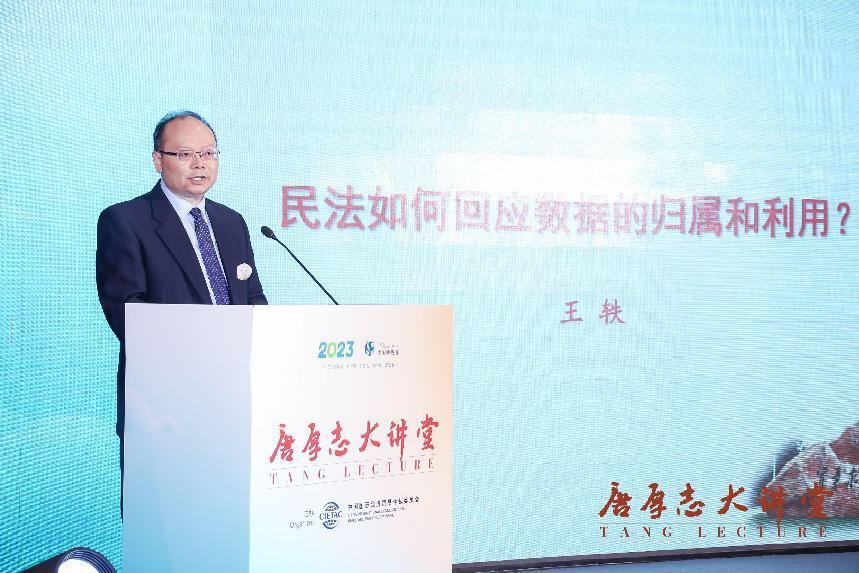 中國(guó)人民大學(xué)副校長(zhǎng)、貿(mào)仲仲裁員王軼以“民法如何回應(yīng)數(shù)據(jù)的歸屬和利用”為題開(kāi)展主旨演講。他介紹了數(shù)據(jù)的含義和性質(zhì),援引民法典闡釋了民法上數(shù)據(jù)的內(nèi)涵與外延,剖析了數(shù)據(jù)承載的人身利益、財(cái)產(chǎn)利益和民法回應(yīng)的難題,重點(diǎn)分享了他在數(shù)據(jù)承載利益分配問(wèn)題上的真知灼見(jiàn)。他表示,建構(gòu)數(shù)據(jù)基礎(chǔ)法律制度是法學(xué)界的使命,數(shù)據(jù)立法過(guò)程中要注意立法權(quán)、執(zhí)法權(quán)和司法權(quán)的配置。