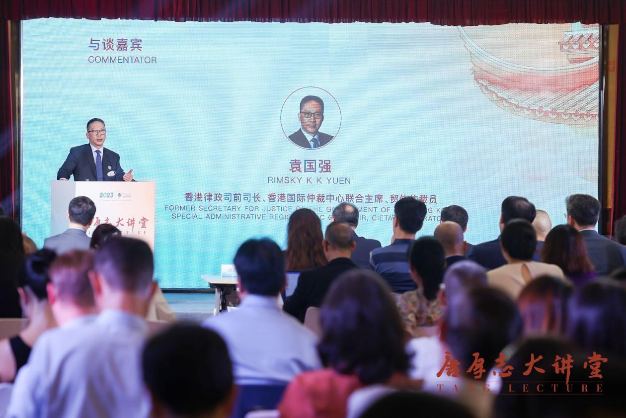 隨后,香港律政司前司長(zhǎng)袁國(guó)強(qiáng)作為與談人發(fā)言。他從微觀和宏觀兩個(gè)視角對(duì)王軼教授的演講進(jìn)行了回應(yīng)。在微觀上,他提出在數(shù)據(jù)屬性、數(shù)據(jù)利益的分配以及涉數(shù)據(jù)問(wèn)題的法律規(guī)范類型等問(wèn)題上,尚待進(jìn)一步研究;在宏觀上,數(shù)據(jù)和先進(jìn)科技的關(guān)系也值得深思,亟需研究科技將如何影響爭(zhēng)議解決進(jìn)而影響公正。