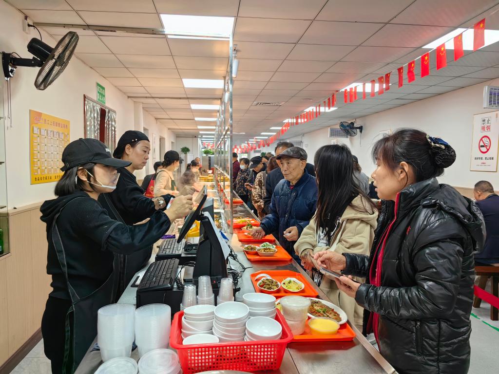 2023年11月22日,居民在湖北省荊州市沙市區(qū)勝利街道工農(nóng)村社區(qū)食堂用餐。新華社發(fā)(王慧 攝)