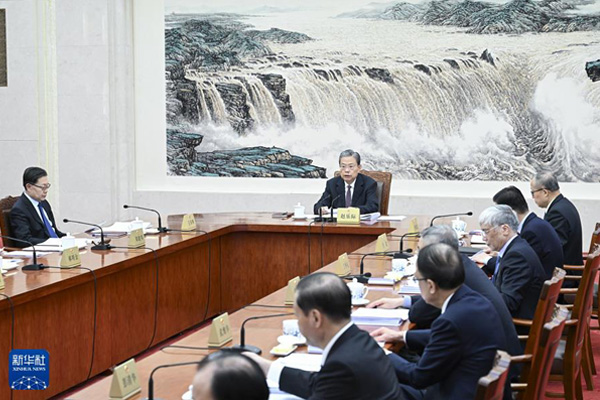 2月7日下午,十四屆全國(guó)人大常委會(huì)第十九次委員長(zhǎng)會(huì)議在北京人民大會(huì)堂舉行,趙樂(lè)際委員長(zhǎng)主持。新華社記者 張領(lǐng) 攝