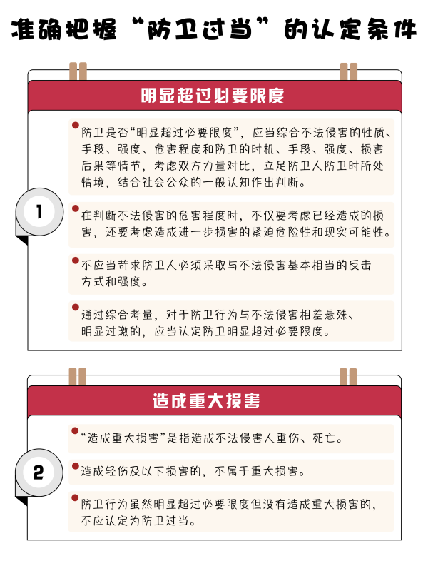 根據(jù)刑法第二十條第二款的規(guī)定,認定防衛(wèi)過當應當同時具備“明顯超過必要限度”和“造成重大損害”兩個條件,缺一不可。