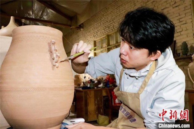 “他很有天賦的,也很刻苦。有時候他的師兄弟都去休息了,他仍然一個人在深夜練習拉坯?!惫菩阏f。