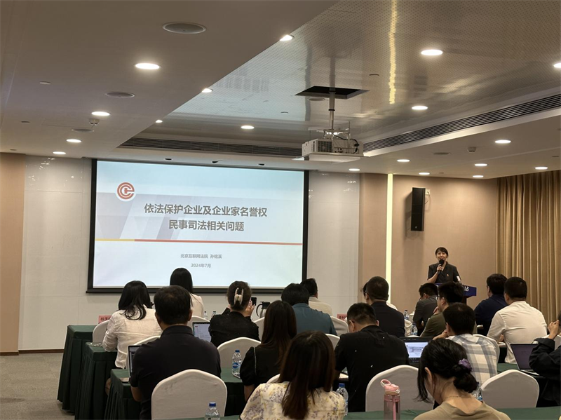 活動(dòng)現(xiàn)場(chǎng),北京互聯(lián)網(wǎng)法院審判委員會(huì)專職委員,三級(jí)高級(jí)法官孫銘溪圍繞企業(yè)名譽(yù)權(quán)、企業(yè)合規(guī)經(jīng)營等內(nèi)容,以案釋法、普法宣講。北京市委網(wǎng)信辦網(wǎng)絡(luò)輿情和舉報(bào)中心工作人員著重從涉企網(wǎng)絡(luò)侵權(quán)信息的舉報(bào)渠道選擇、舉報(bào)信息分類、舉報(bào)材料組織及相關(guān)注意事項(xiàng)等方面提出建議。