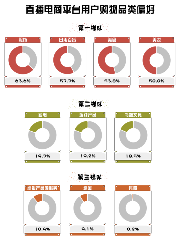 根據(jù)微播易、蟬媽媽等聯(lián)合發(fā)布的《2023年中國直播電商機(jī)會洞察報告》顯示,直播電商平臺用戶購物品類偏好中,美食位列第一梯隊,占比達(dá)到53.8%,反映了公眾對食品消費(fèi)從吃得飽到吃得好的轉(zhuǎn)變。