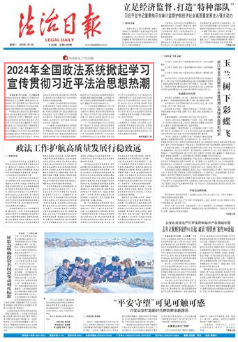 本報(bào)北京1月12日訊 記者蔡長(zhǎng)春 全國政法系統(tǒng)堅(jiān)持不懈用習(xí)近平新時(shí)代中國特色社會(huì)主義思想凝心鑄魂,2024年以來,持續(xù)深入學(xué)習(xí)宣傳貫徹習(xí)近平新時(shí)代中國特色社會(huì)主義思想特別是習(xí)近平法治思想,掀起學(xué)習(xí)宣傳貫徹習(xí)近平法治思想熱潮。