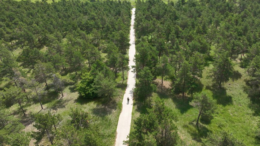 2024年5月31日,李東魁在巡護(hù)防護(hù)林(無(wú)人機(jī)照片)。新華社記者 楊青 攝