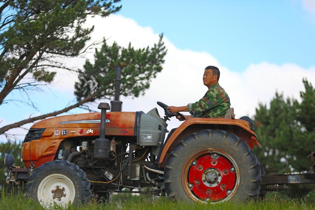 2024年5月31日,李東魁開(kāi)拖拉機(jī)巡護(hù)防護(hù)林。新華社記者 楊青 攝