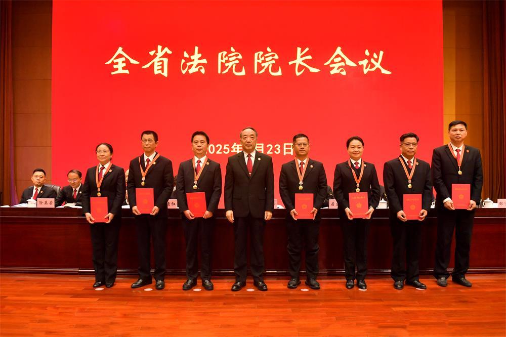 會(huì)上,傅信平為7位基層法院院長(zhǎng)頒發(fā)了榮譽(yù)天平紀(jì)念章和證書。江西高院黨組副書記、副院長(zhǎng)居國屏主持會(huì)議,黨組成員、政治部主任盛茵通報(bào)2024年全省法院獲得省部級(jí)以上表彰獎(jiǎng)勵(lì)和通報(bào)表揚(yáng)的集體和個(gè)人情況。3家中院和5家基層法院現(xiàn)場(chǎng)作交流發(fā)言,9家中院和6家基層法院作書面交流。
