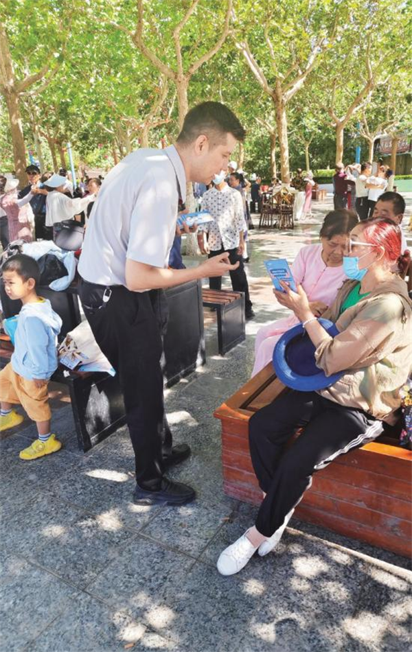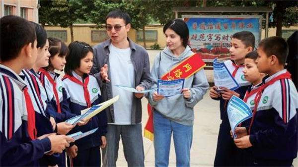 2024年9月新疆大學(xué)生網(wǎng)信普法志愿者在庫爾勒市梨香湖網(wǎng)絡(luò)安全主題公園向群眾發(fā)放特色網(wǎng)絡(luò)安全知識集章打卡手冊