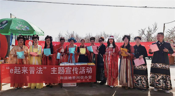 2024年4月新疆和田地委網(wǎng)信辦在和田縣桃花源開展“e起來普法”網(wǎng)絡(luò)安全宣傳活動(dòng)