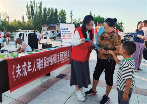 2024年7月克拉瑪依市獨(dú)山子區(qū)委網(wǎng)信辦在南廣場跳蚤市場舉辦《未成年人網(wǎng)絡(luò)保護(hù)條例》主題宣傳活動(dòng)