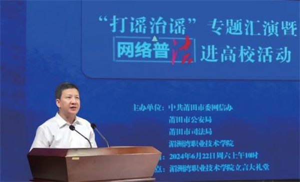 在莆田市委網信辦、市公安局指導下,由莆仙戲劇院團隊創(chuàng)作并演繹莆仙小戲《小五哥破謠記》,通過莆田民間傳奇人物小五哥,重新演繹了打謠治謠的傳奇故事,將國家級非遺莆仙戲和網絡普法巧妙融合,警醒網民“互聯網不是法外之地”,極具普法教育意義和莆仙文化價值。在2024年網絡普法進高校、進戲臺活動中,獲得了廣大學生、群眾的一致好評。