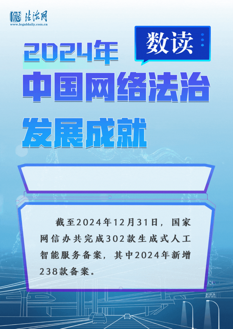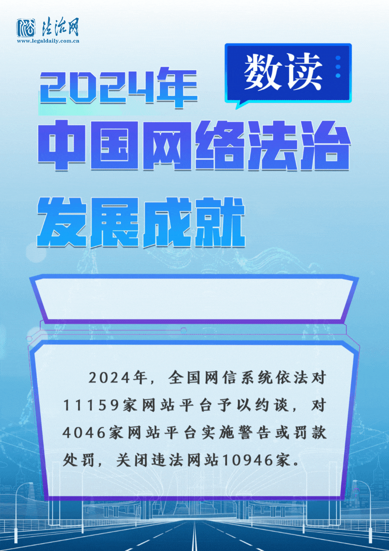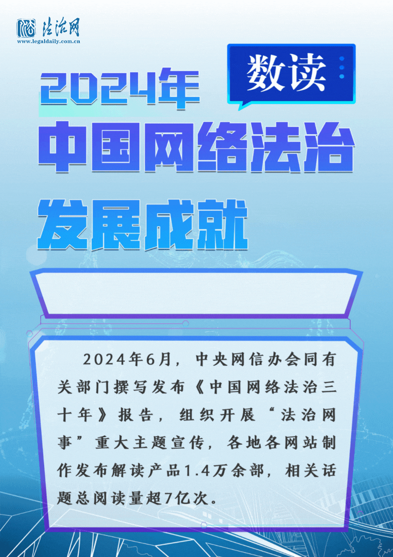 4月27日,國家互聯(lián)網(wǎng)信息辦公室發(fā)布《中國網(wǎng)絡(luò)法治發(fā)展報告(2024年)》。這是首部國家部門層面發(fā)布的網(wǎng)絡(luò)法治綜合性年度報告,既是《中國網(wǎng)絡(luò)法治三十年》報告的續(xù)篇,也是中國網(wǎng)絡(luò)法治發(fā)展年度報告的開篇。讓我們用一組數(shù)據(jù)帶你看我國網(wǎng)絡(luò)法治建設(shè)這一年的成就,感受網(wǎng)絡(luò)法治建設(shè)邁出的堅實步伐。